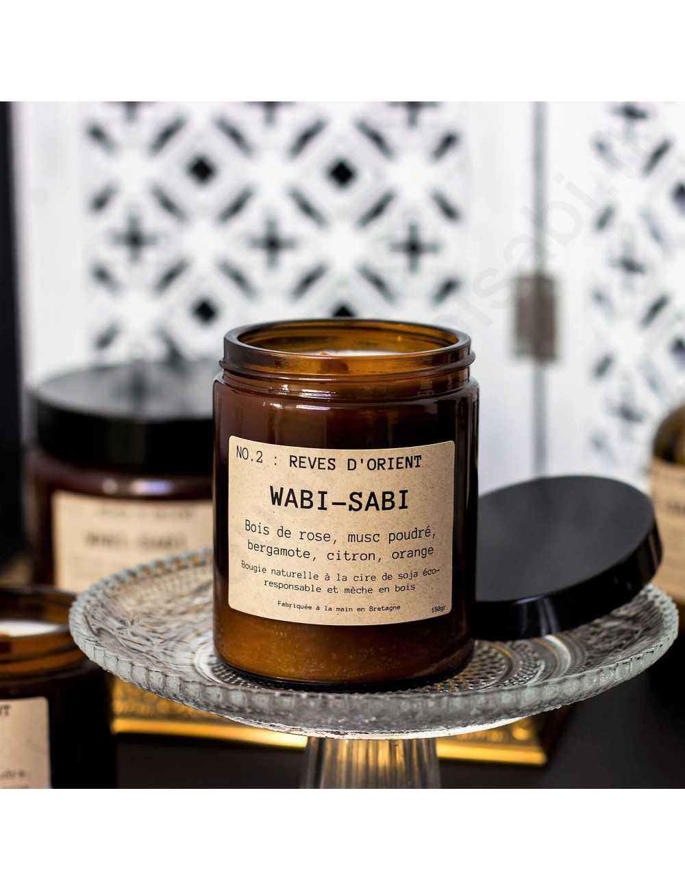 Découvrez nos Bougies cire de soja et mèche en bois Wabi-Sabi NO.2 : Rêves d'Orient. Parfumez votre intérieur avec du Bois de rose, du musc poudré, de la bergamote, du citron et l'orange.